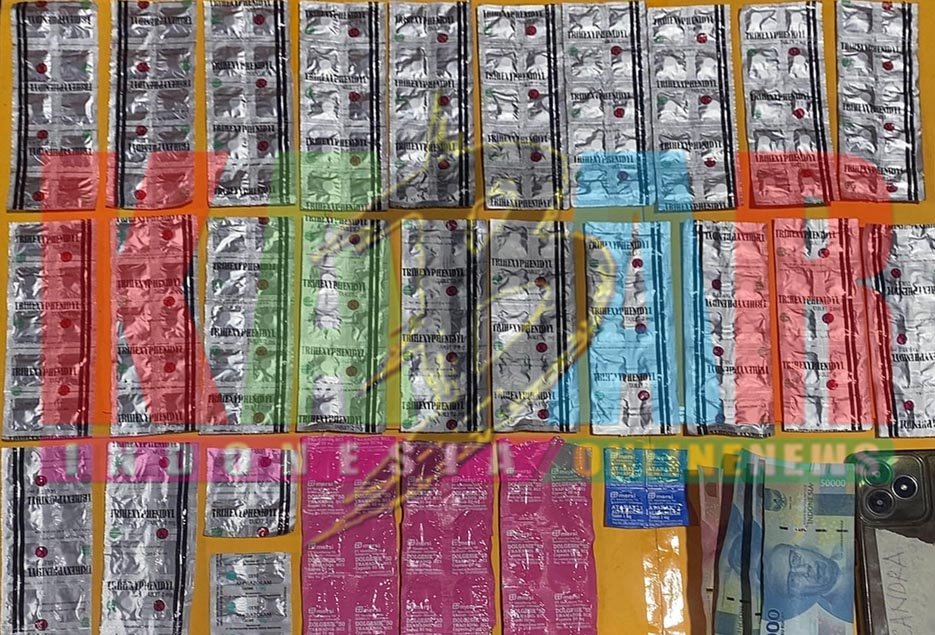 Ngawi-KIO. SatResNarKoba POLRES Ngawi yang dipimpin KaSatNarKoba AKP. MARJI Wibowo, S.H., M.H., berhasil MENGUNGKAP kasus dugaan tindak PIDANA di bidang KESEHATAN dengan mengamankan seorang pria berinisial CWNW alias PETHUK (25) di wilayah Kecamatan SINE, Kabupaten NGAWI. Dari tangan pelaku, PETUGAS menyita RATUSAN butir obat keras daftar G, di antaranya Trihexyphenidyl, Dolgesik, Alprazolam, dan Atarax, serta uang tunai sejumlah Rp. 250.000,- yang diduga hasil transaksi dan satu unit telepon genggam yang digunakan dalam aktivitas peredaran.